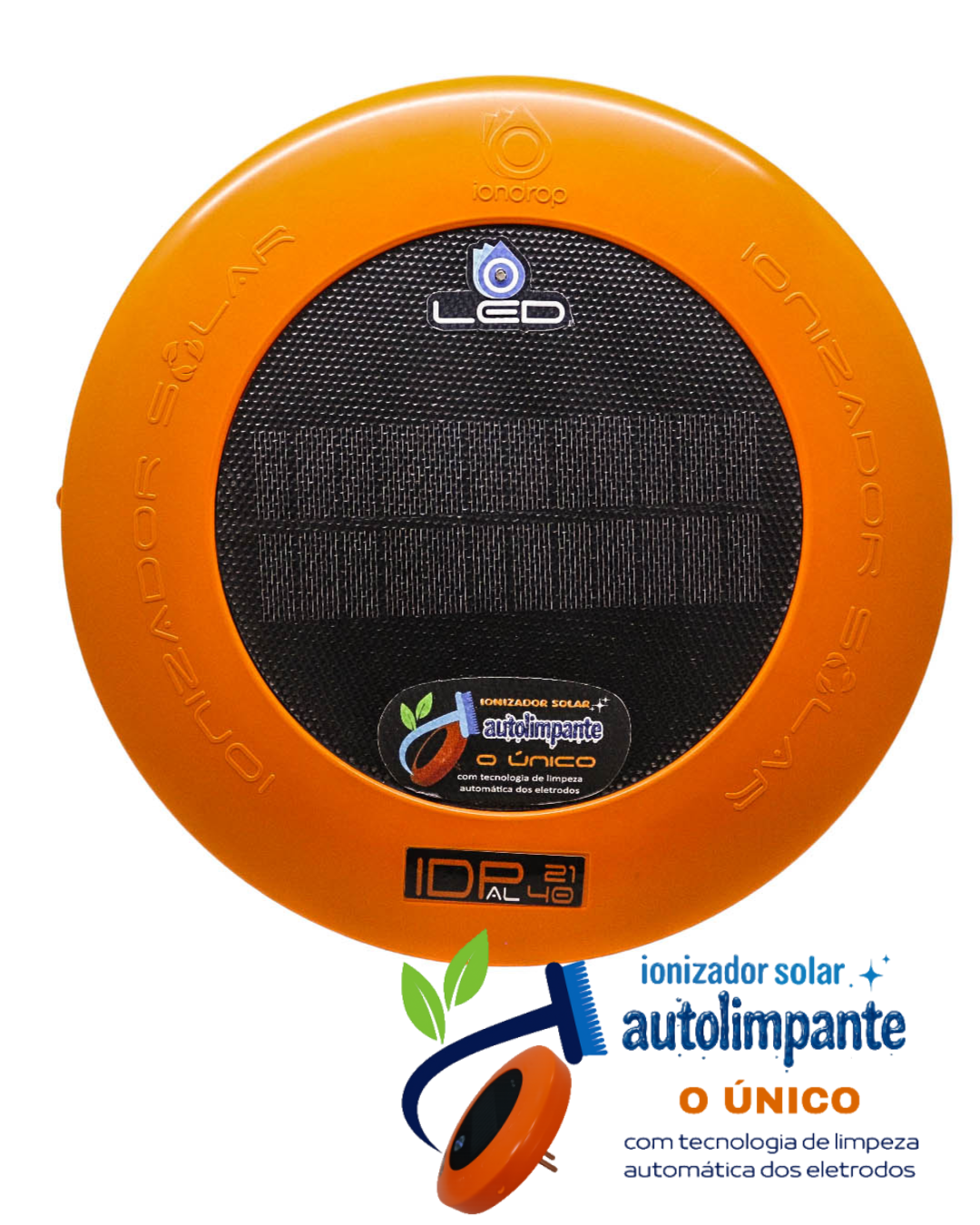 Os pioneiros no Brasil lançam o ÚNICO ionizador solar autolimpante do mercado. Com tecnologia de limpeza automática dos eletrodos de cobre.
