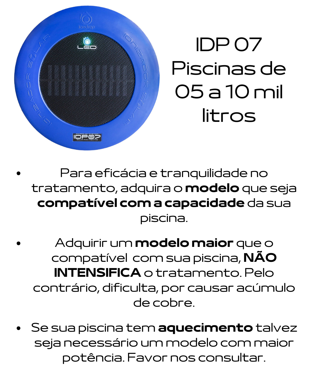 Posso comprar um ionizador para piscinas de maior volume que a minha? Não é recomendado, pois atrapalha o tratamento ao invés de intensificá-lo.
