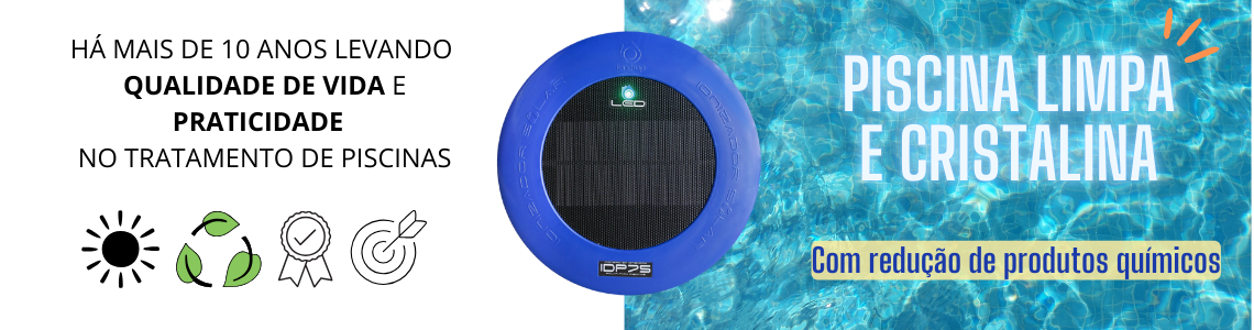Ionizador solar eficaz, pois em apenas 1 mês de uso a redução dos produtos químicos já é notável. E mantém a piscina limpa o ano todo.